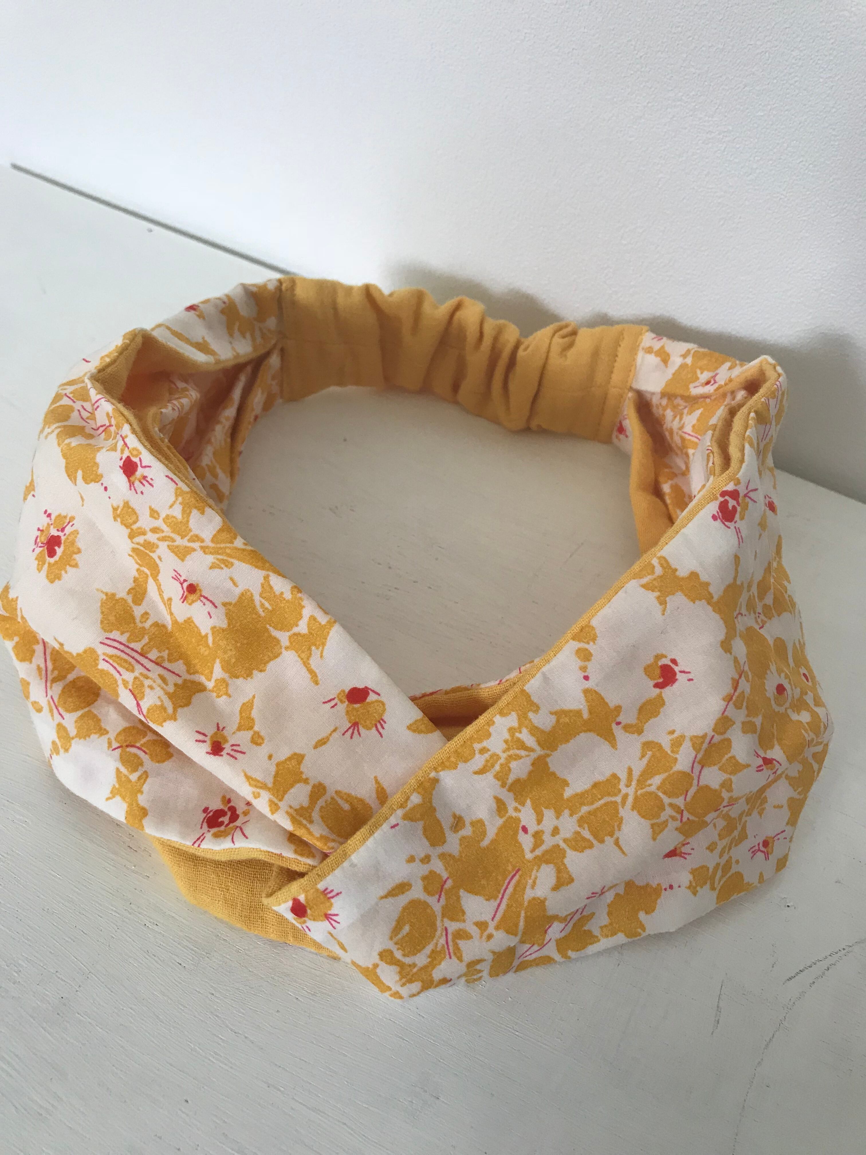 ヘアバンドの幅は、1番太い部分が約10cm、ゴムを伸ばす前の頭位は約60cmです。