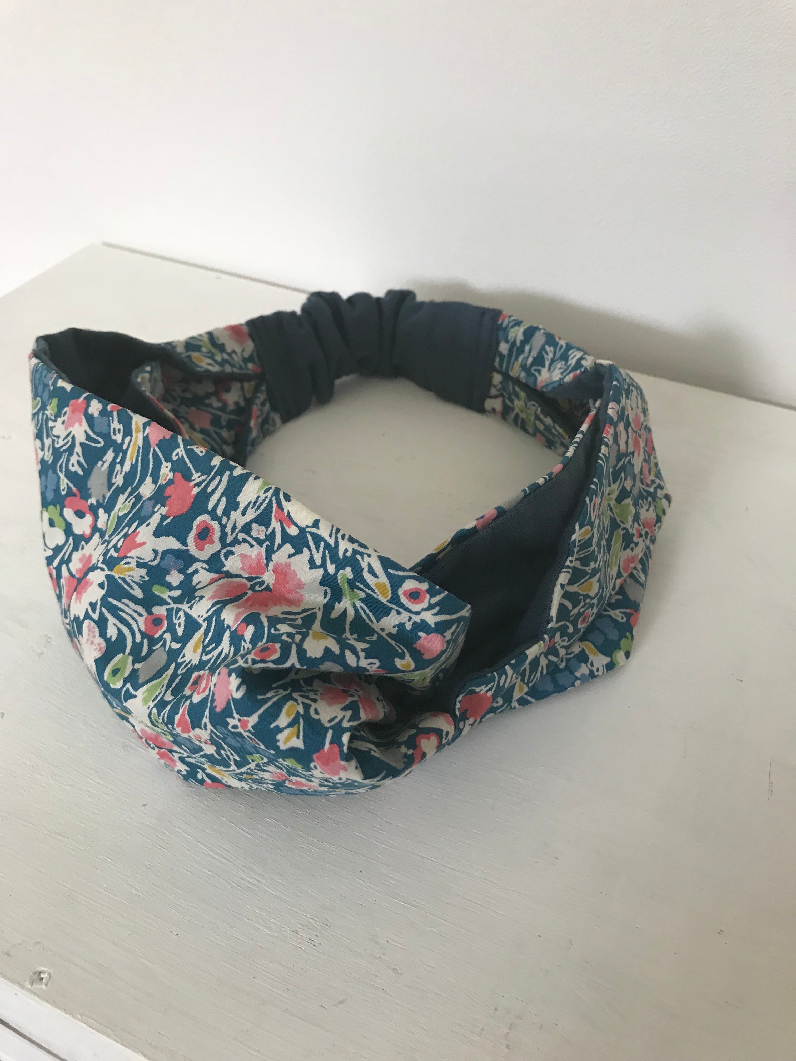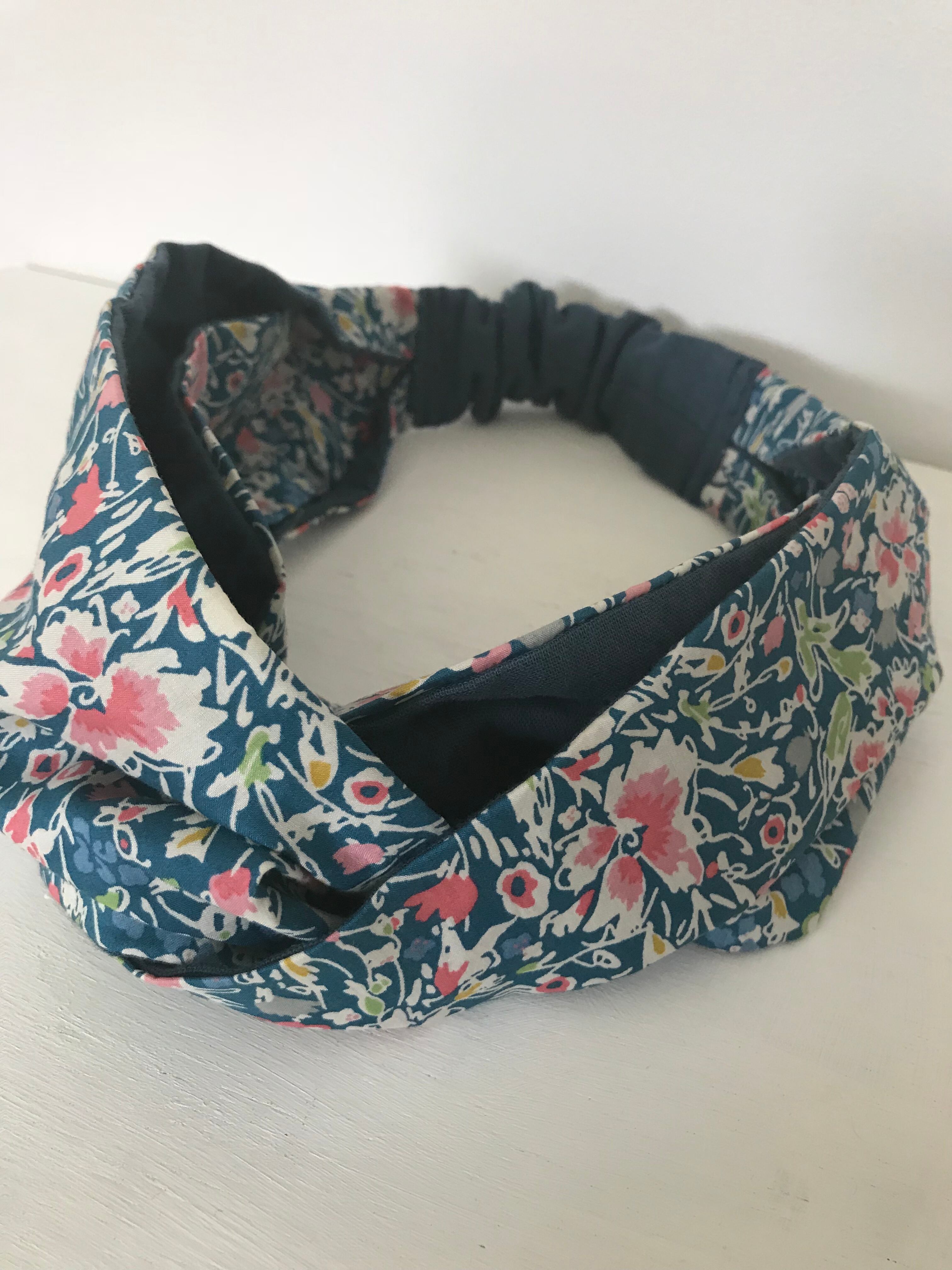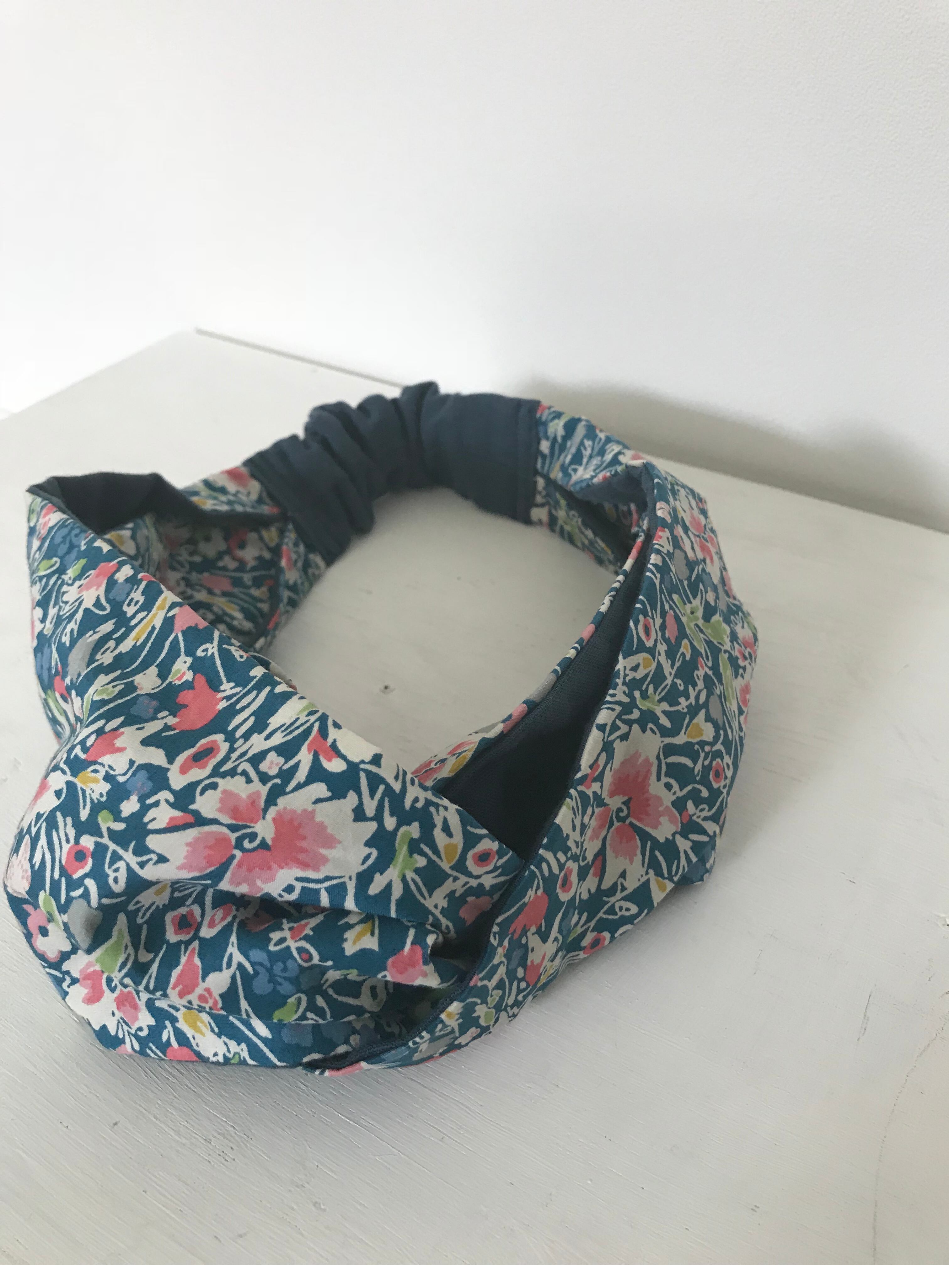 リバティタナローン生地、裏地にはダークターコイズのダブルガーゼを使用しています。