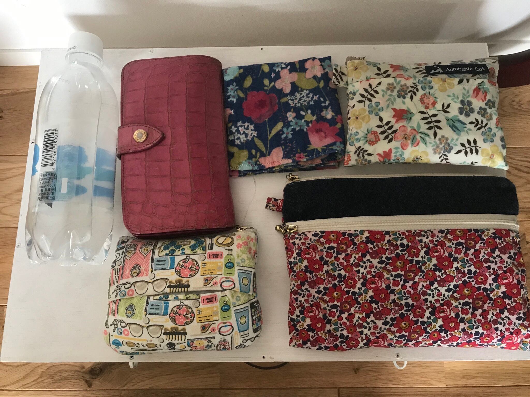 500mlのペットボトル、長財布、ハンカチ、ポーチ、スマホ等余裕で入ります。