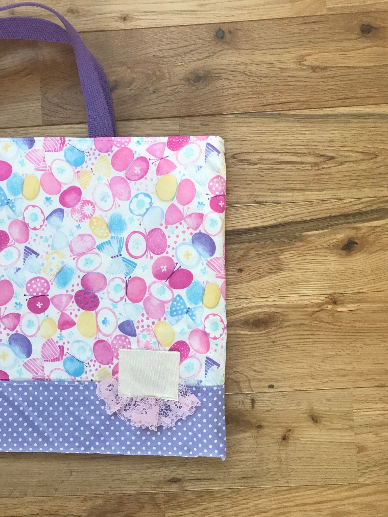 レッスンバッグ 縦30cm、横40cm、持ち手を合わせた縦が43cmです。
