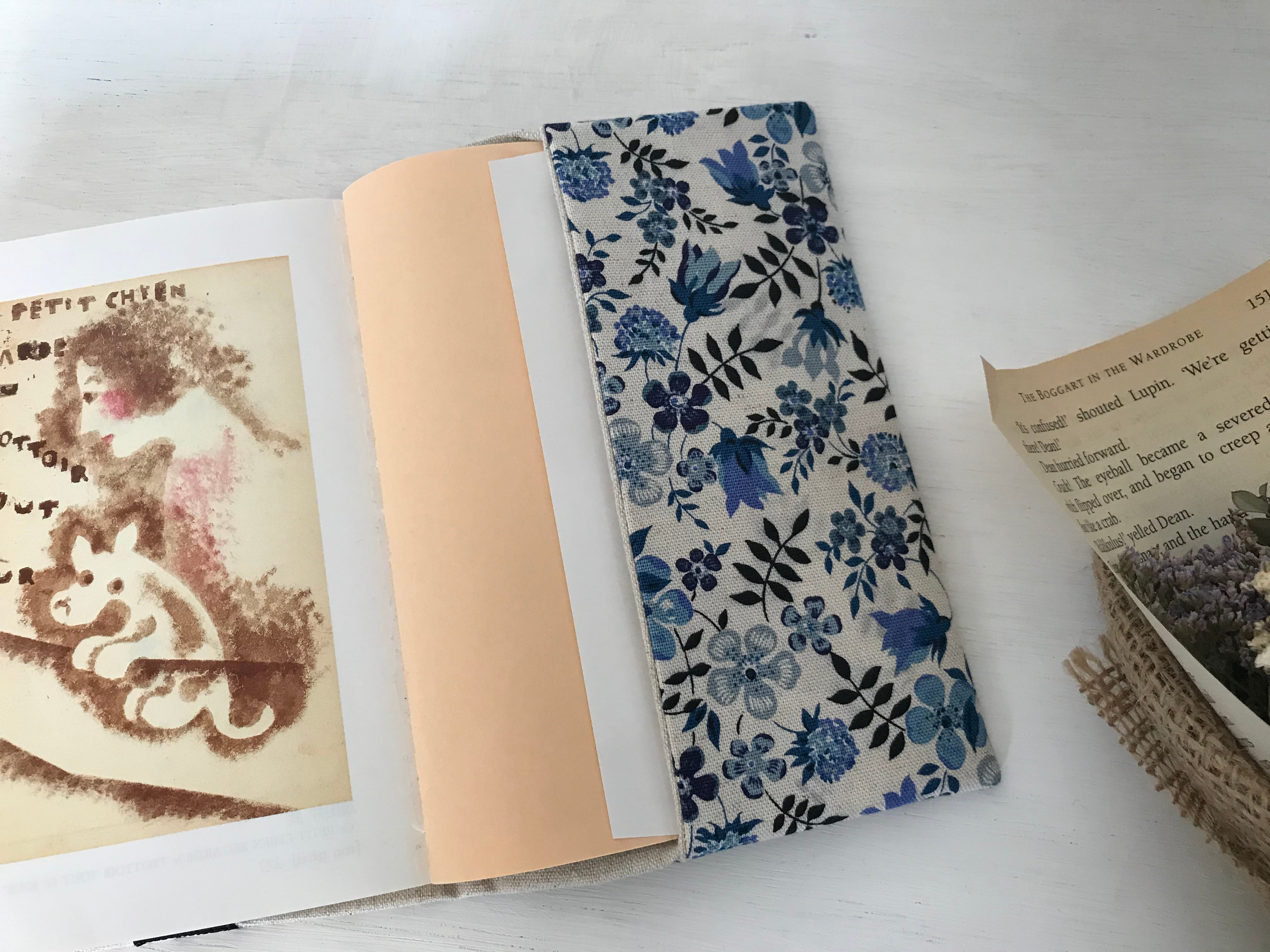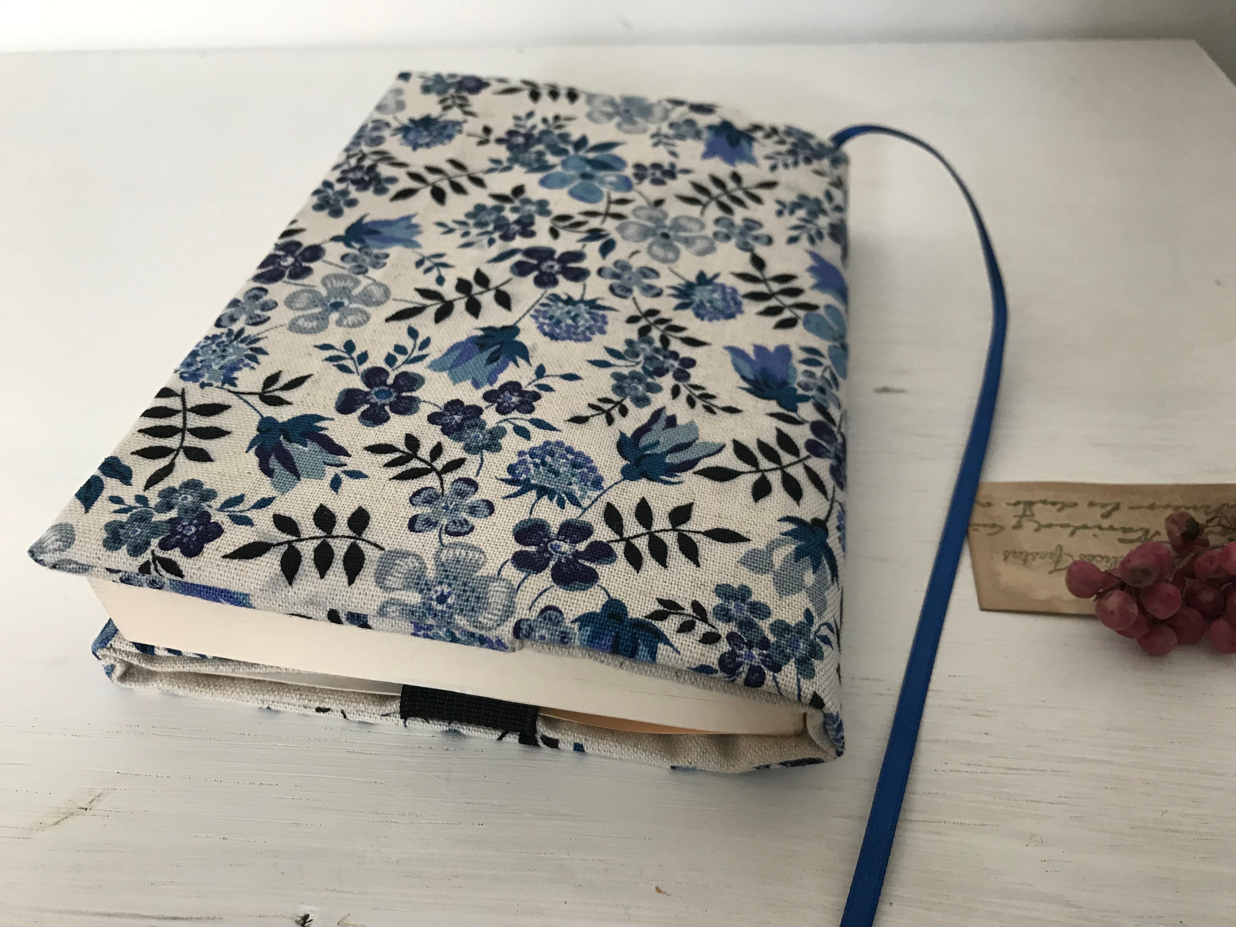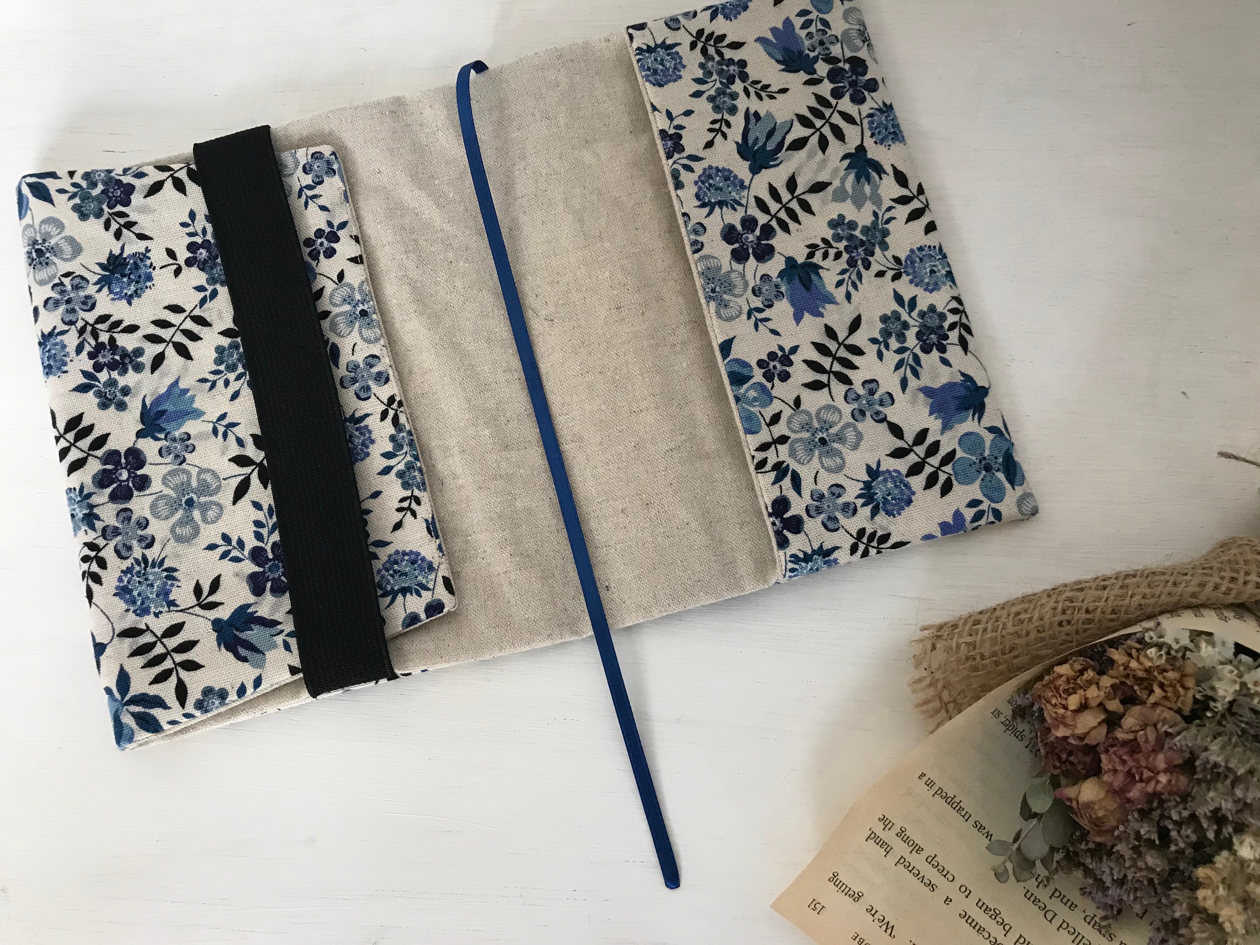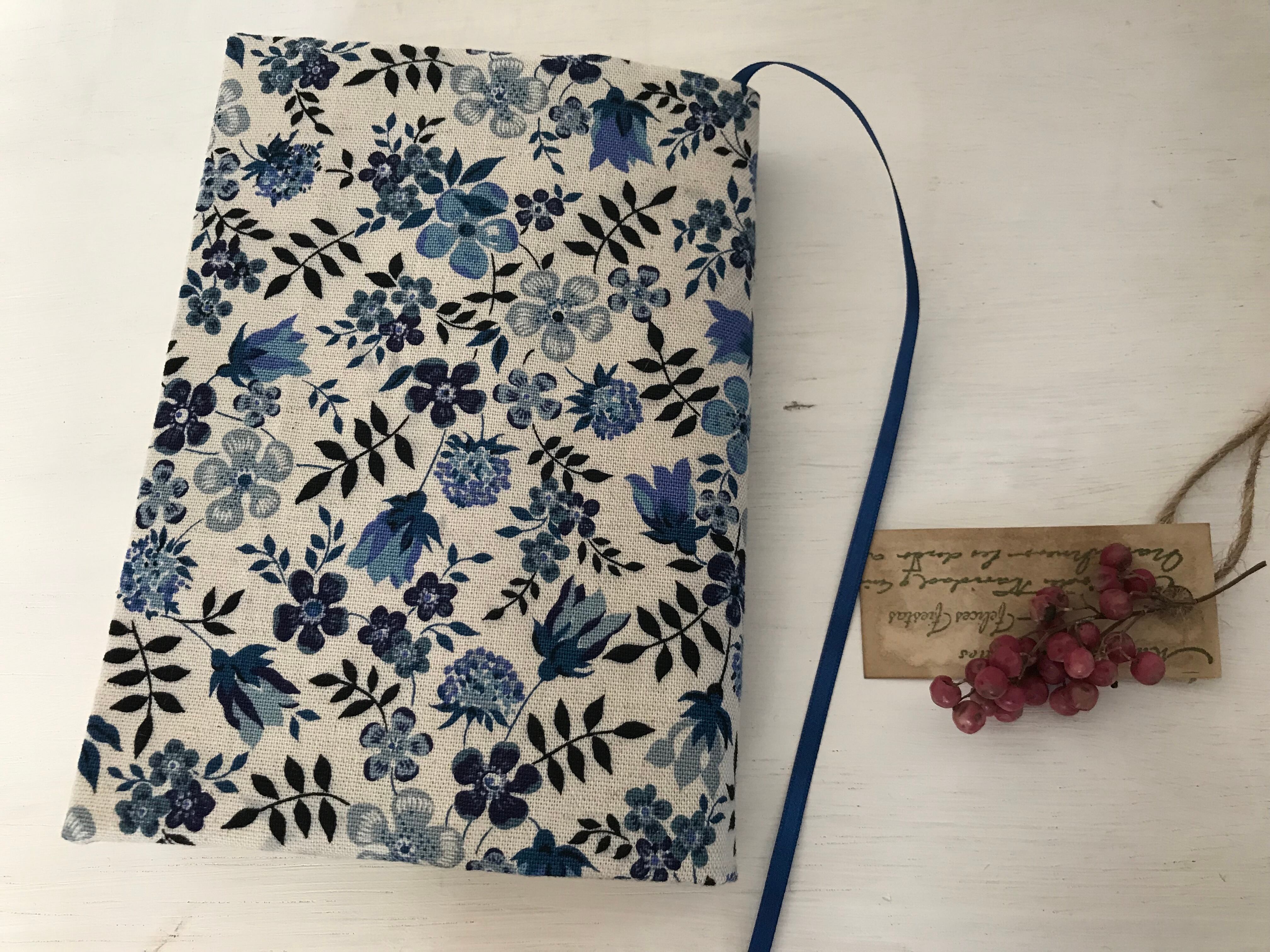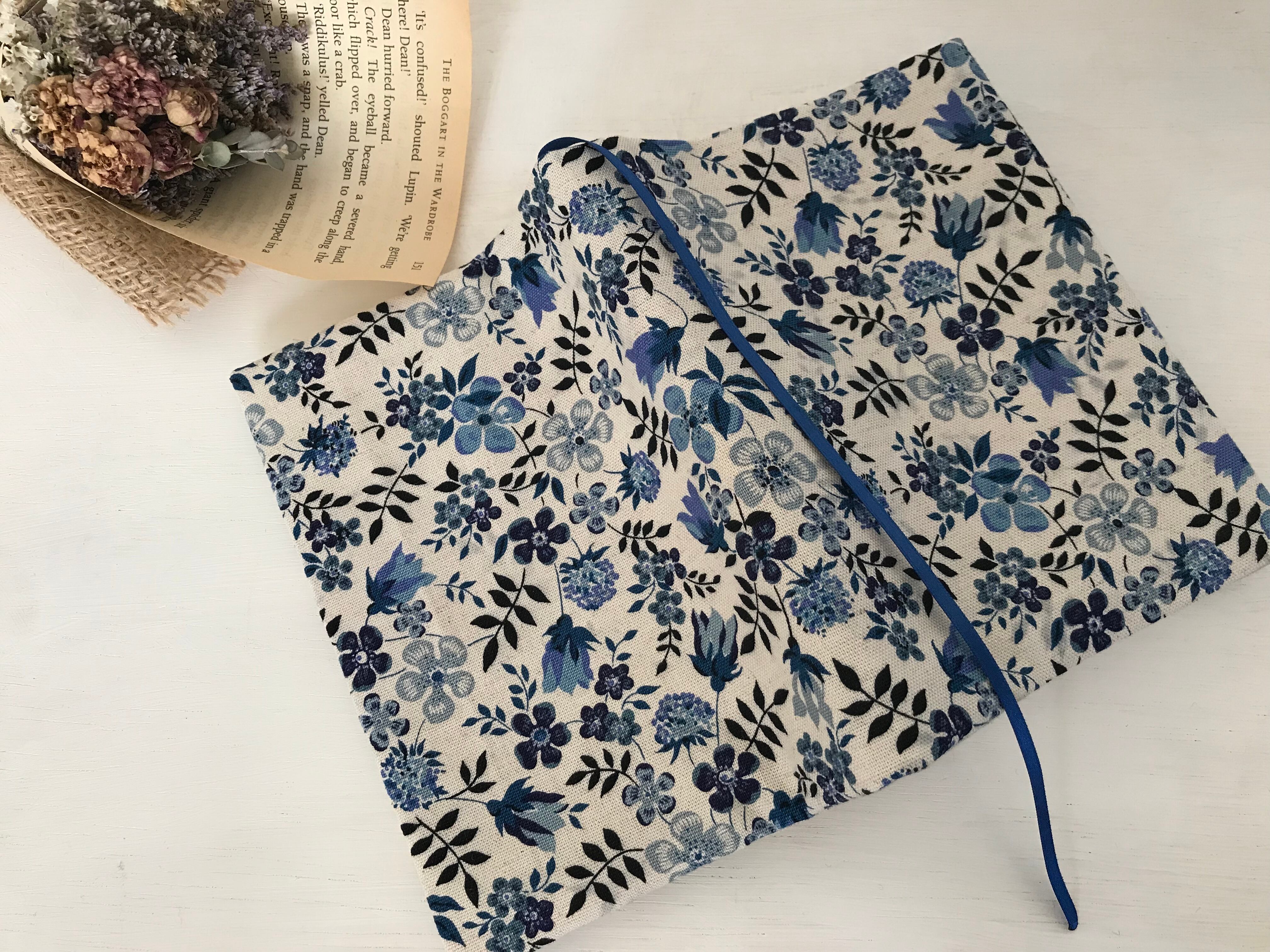 青系の花柄が可愛らしくも落ち着いた雰囲気のブックカバーです。