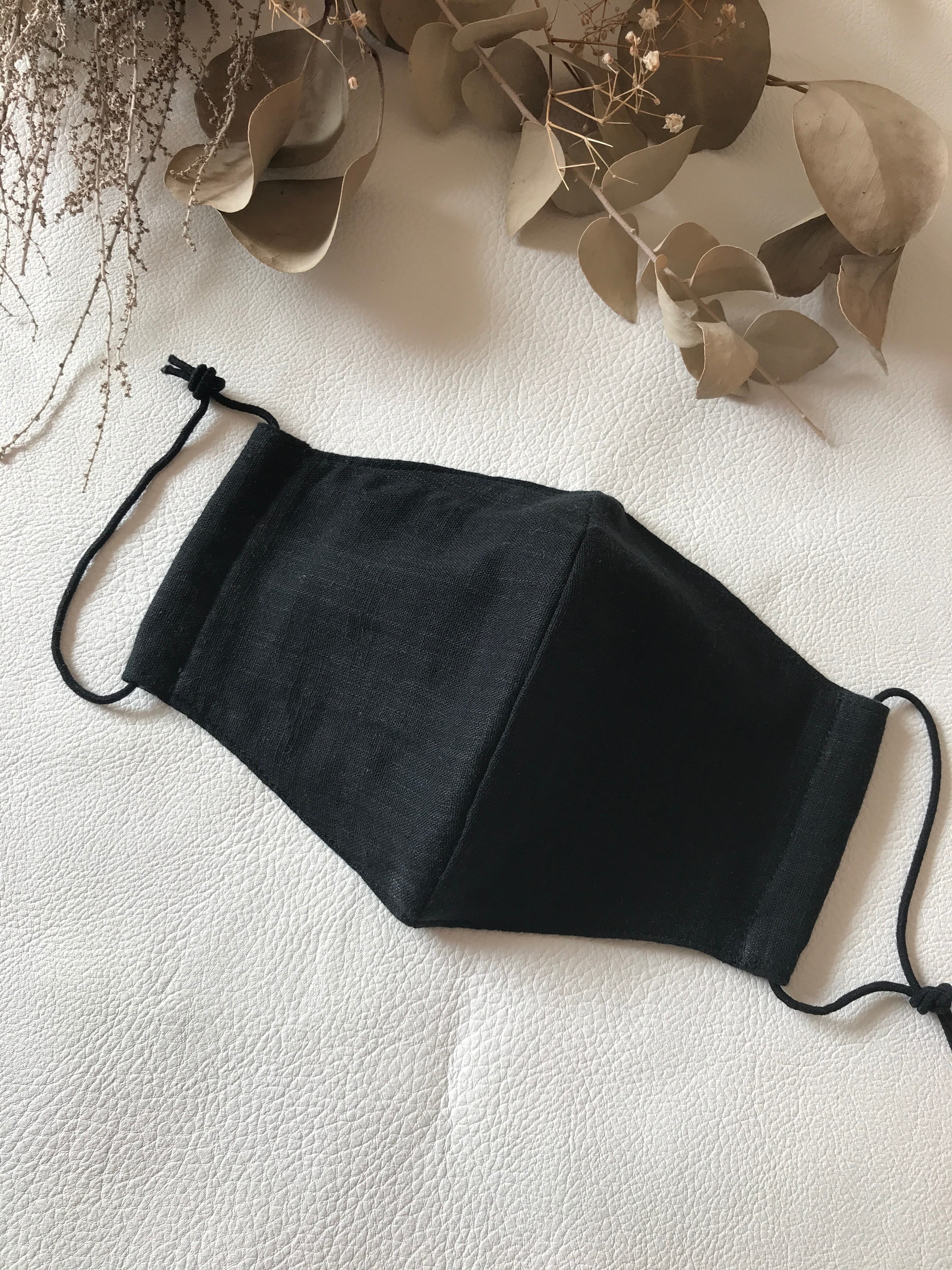 表に綿麻生地を、裏にダブルガーゼを使用した大人用の立体マスクです。