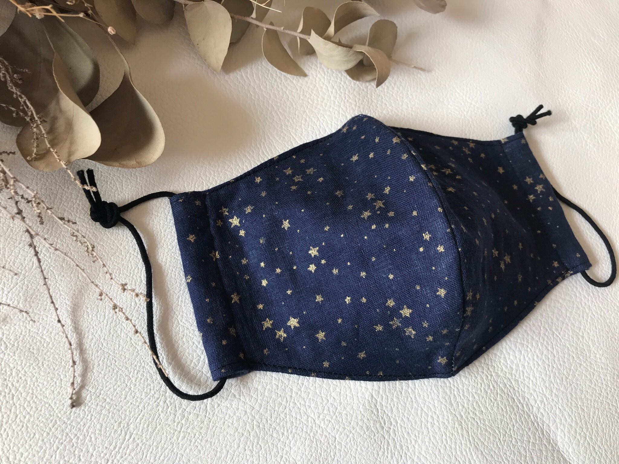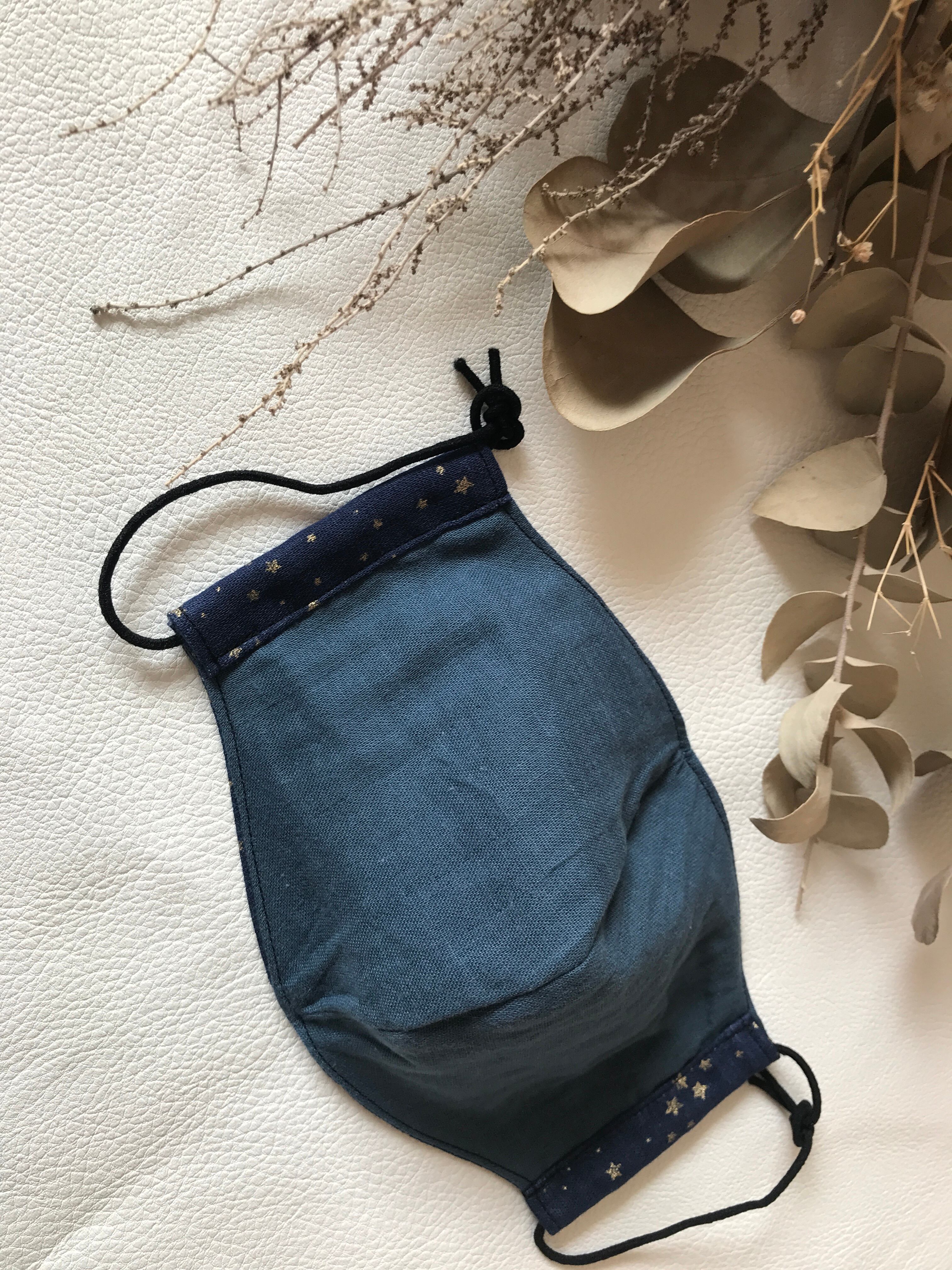 大人用 立体マスク 紺にゴールドスター