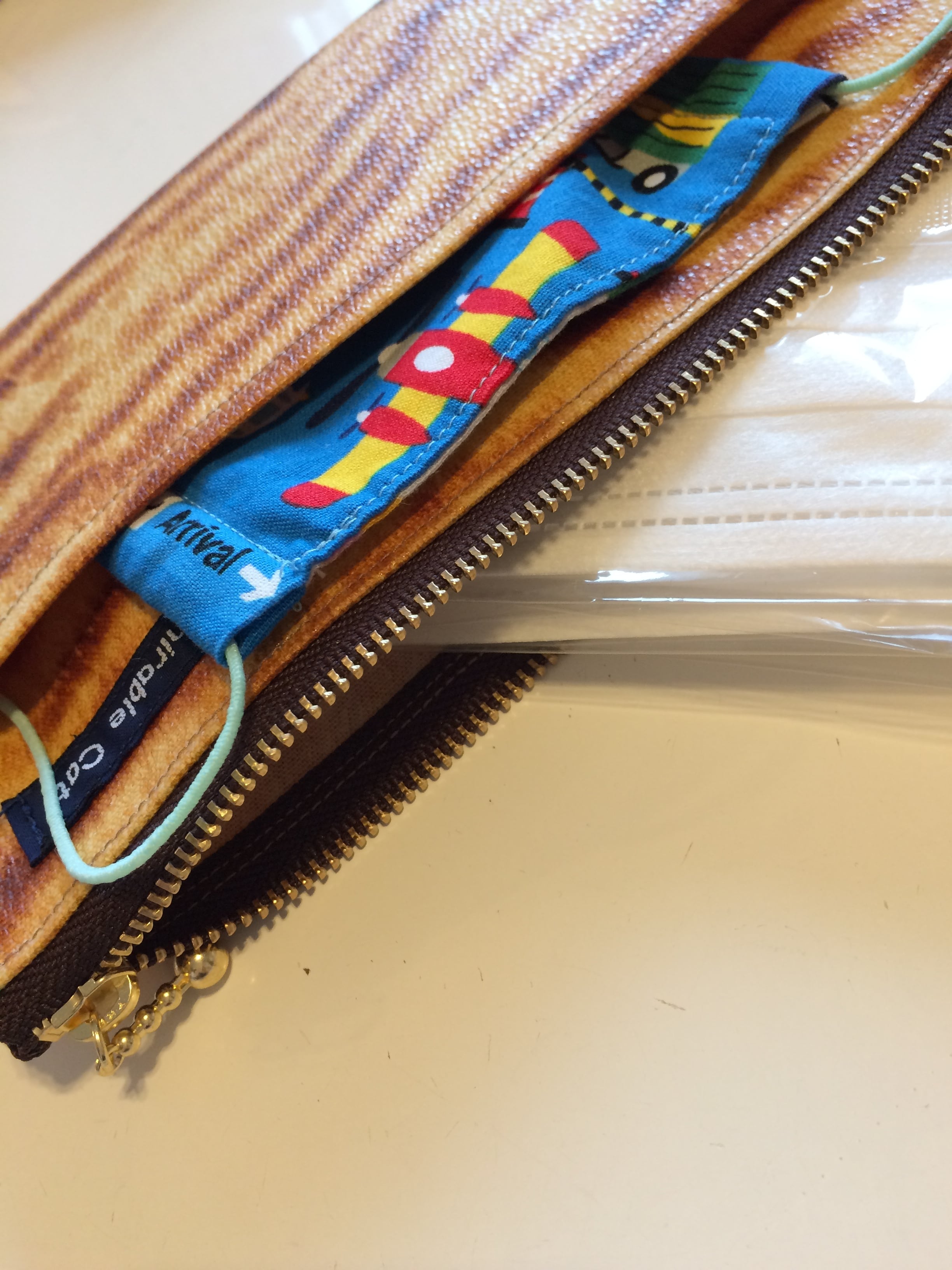 外したマスクを入れておけるポケットがあり、マスクがグチャグチャになってしまうのが防げます。