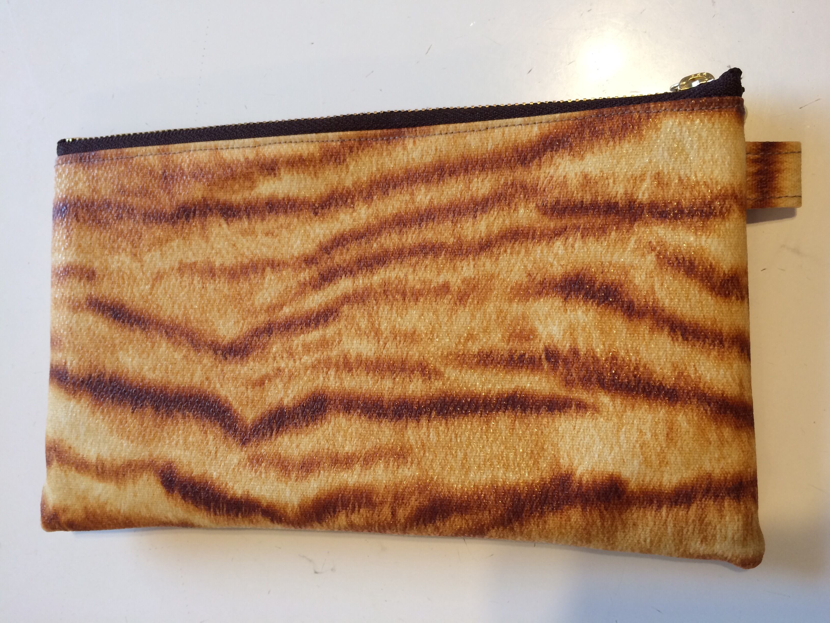 茶トラ柄のラミネート生地を使用して、マスクポーチを作りました。