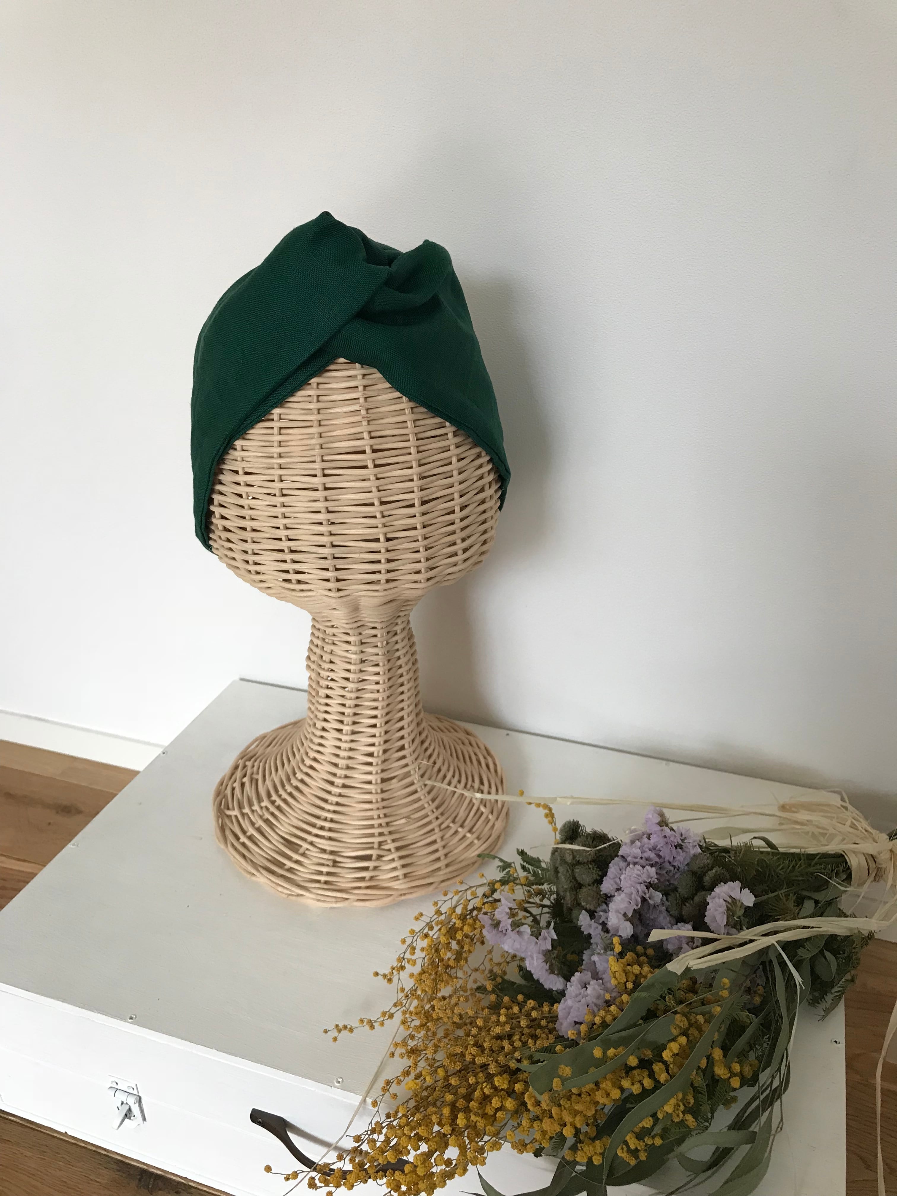 ヨーロッパリネン クロスヘアバンド 千歳緑