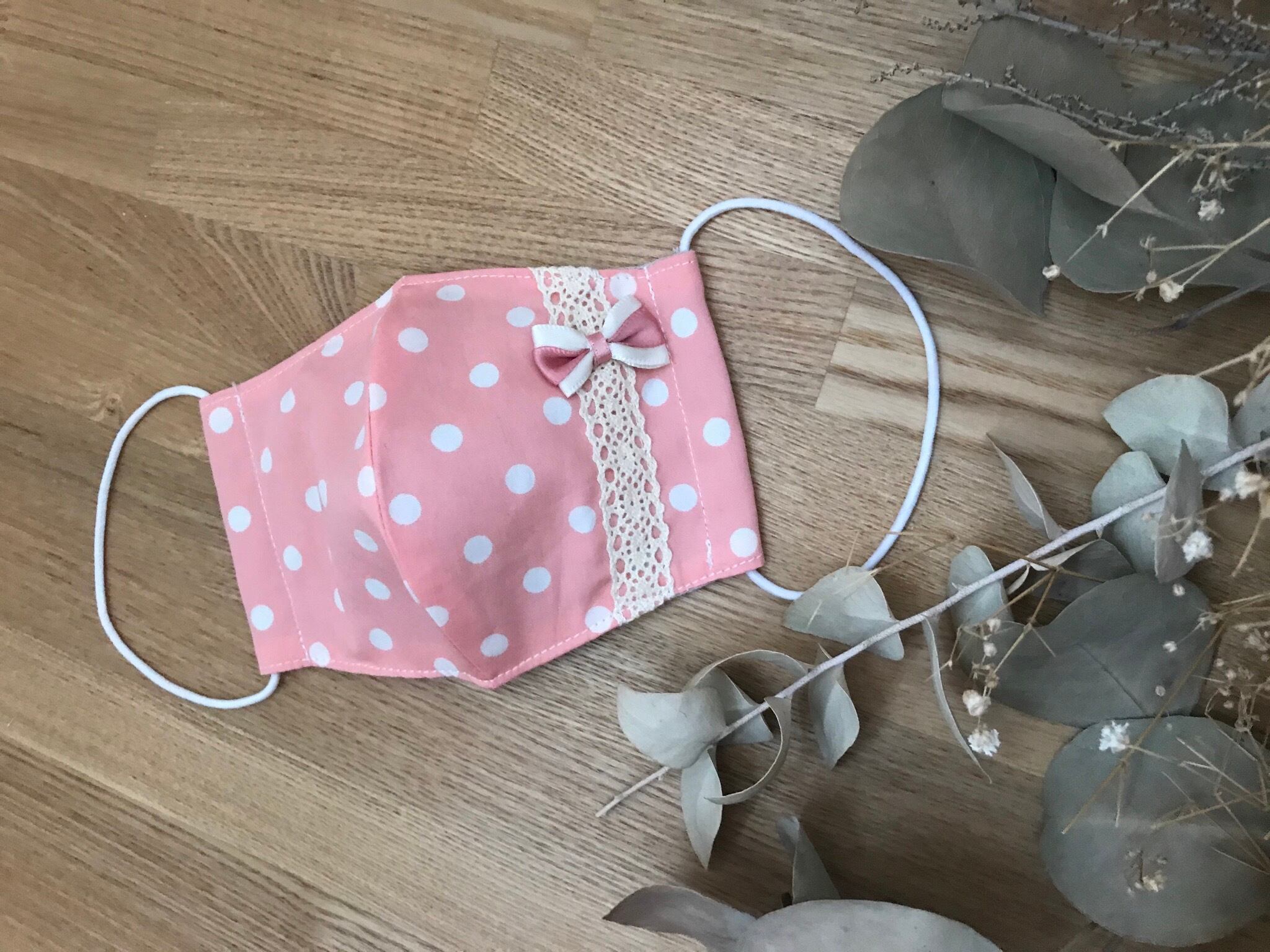 表にはレースとリボンを付けて可愛く、立体になっていて鼻が苦しくなりにくいです。