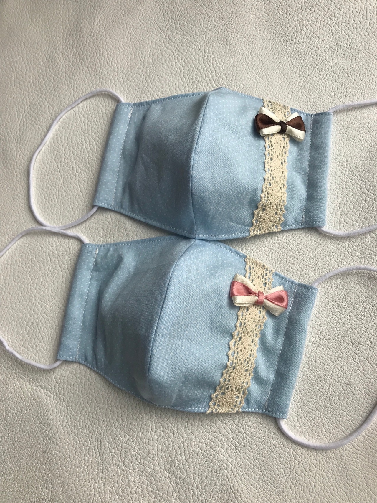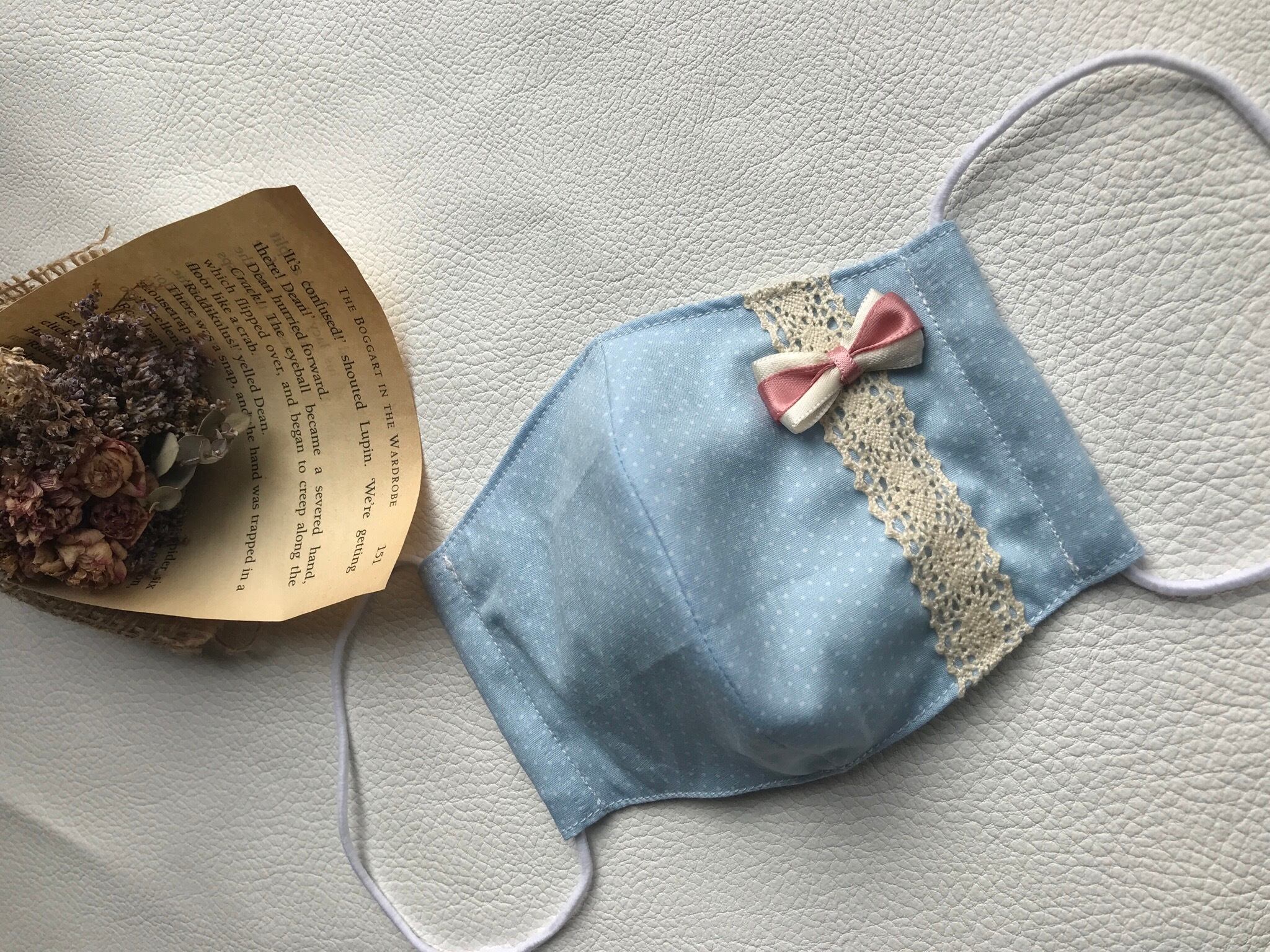 表にはレースとリボンを付けて可愛く、立体になっていて鼻が苦しくなりにくいです。