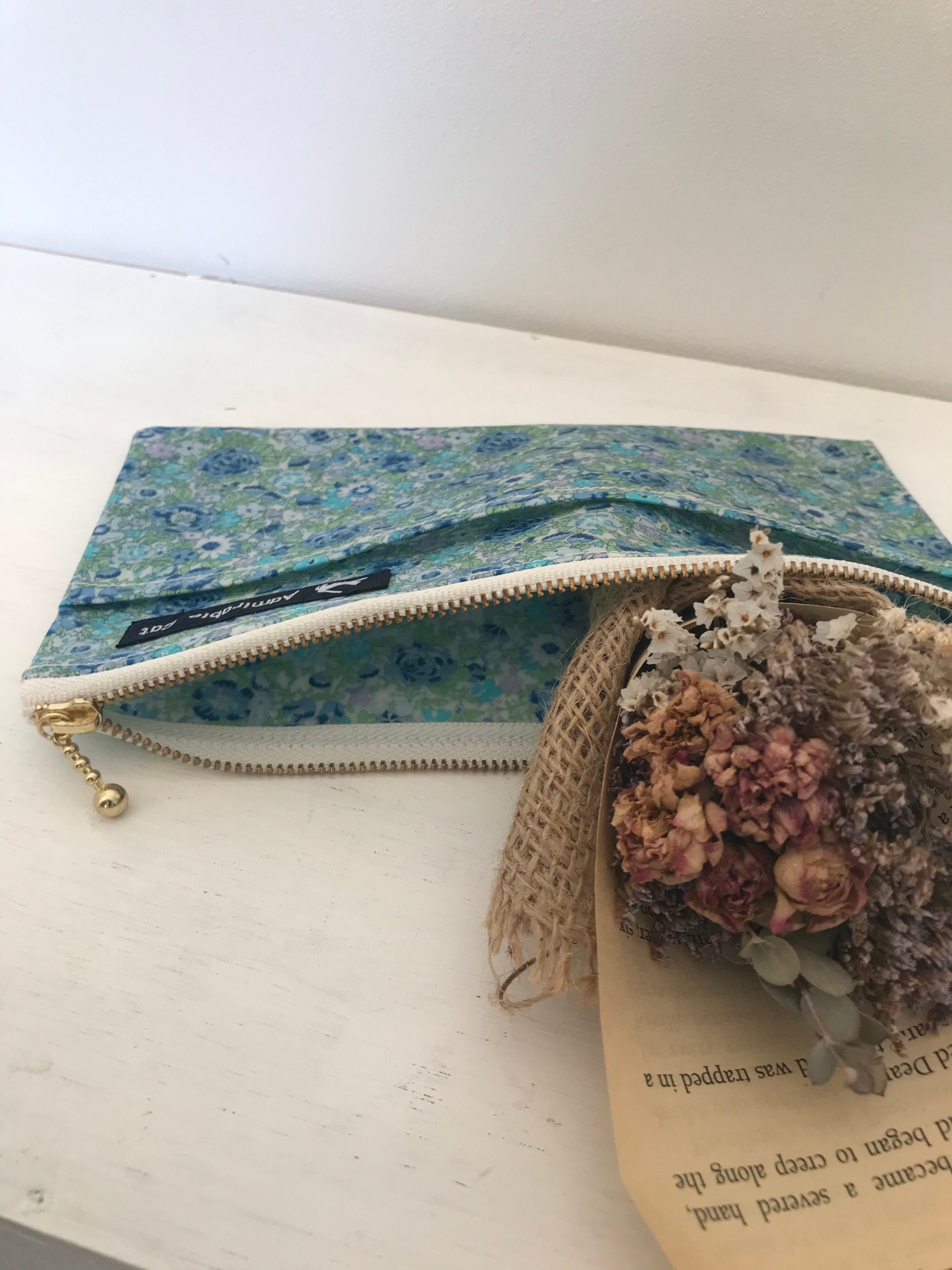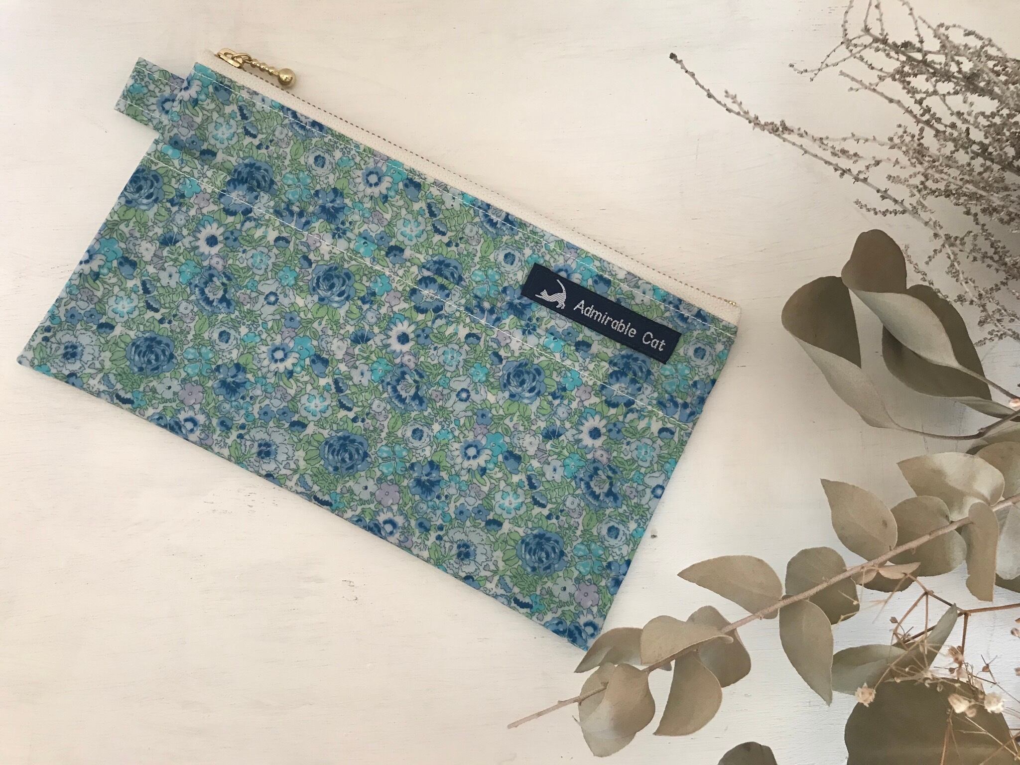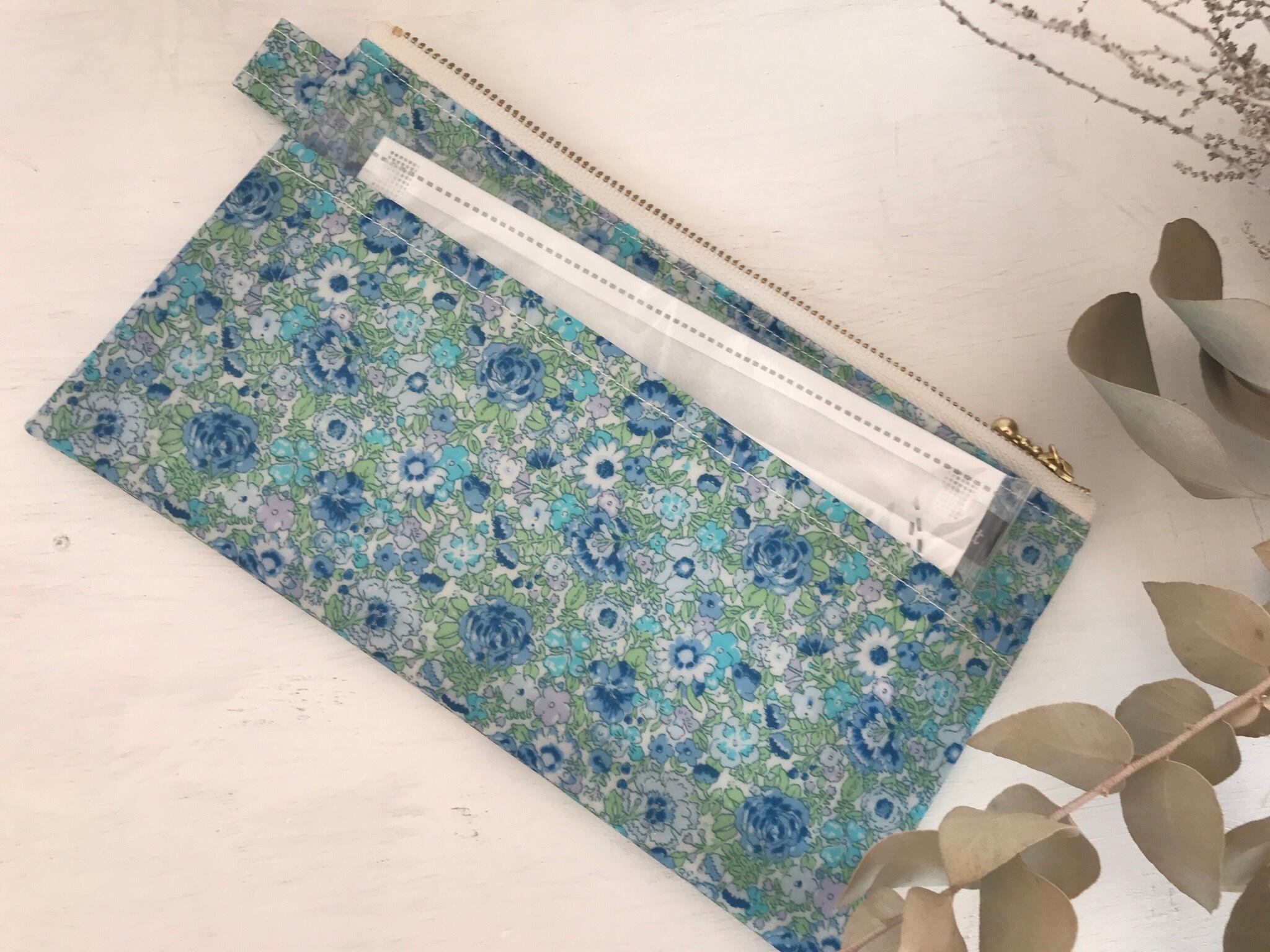 リバティ アメリーのラミネート生地を使用して、マスクポーチを作りました。