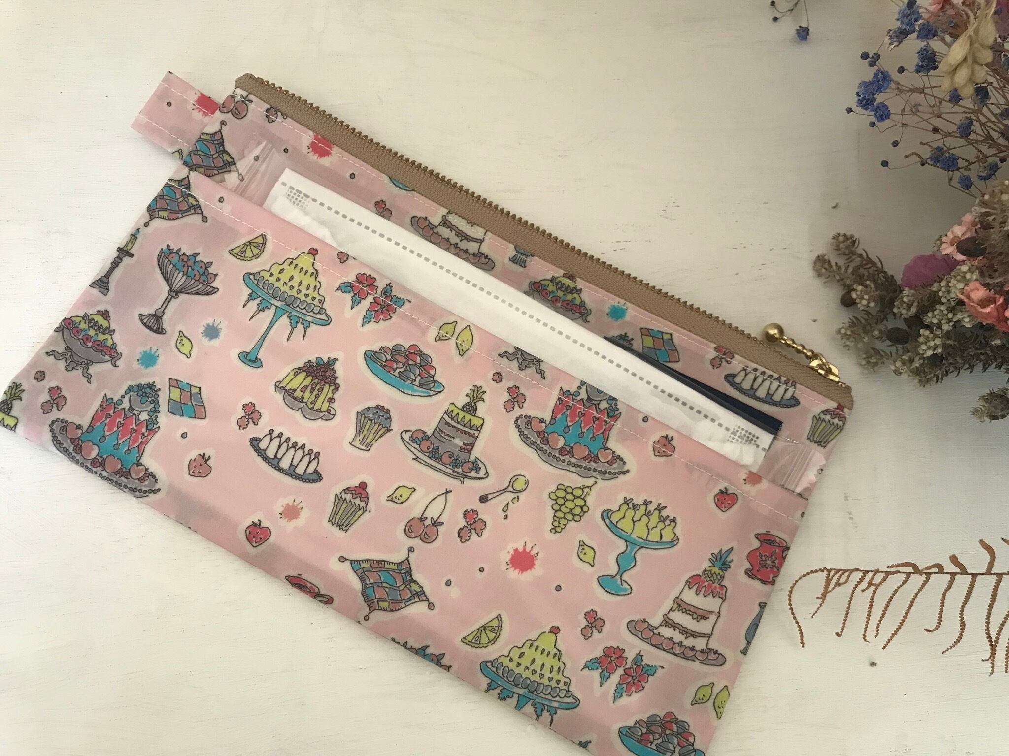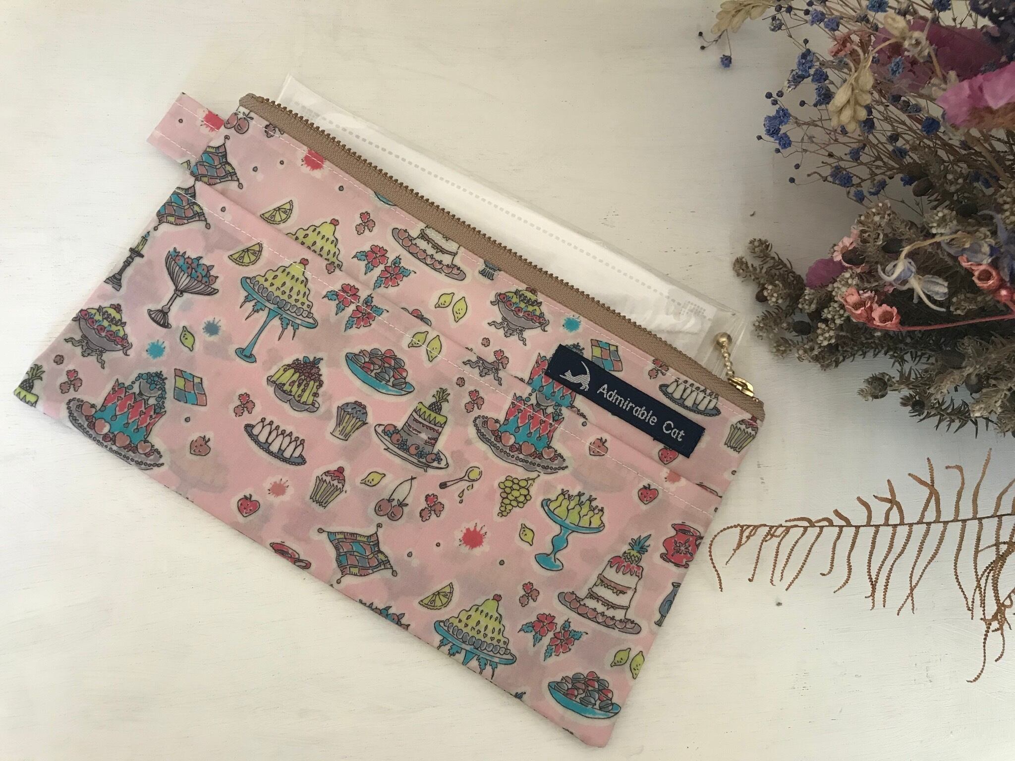 リバティ ハイティのラミネート生地を使用して、マスクポーチを作りました。